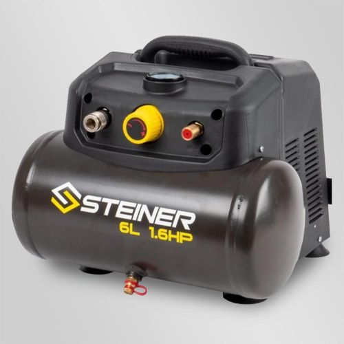 Compresseur portable 6L 1.6CV sans huile STEINER + kit pneumatique 12 pièces