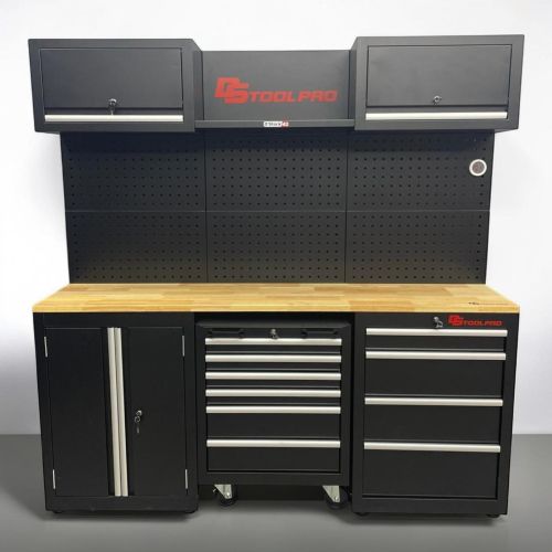 Servante établi XXL 160cm vide avec 10 tiroirs + placard et panneau arriere Pro Shark