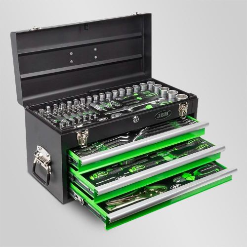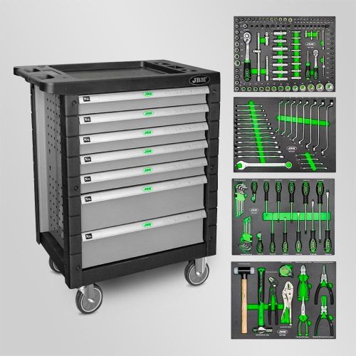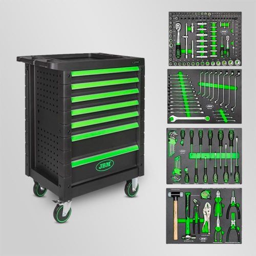 Servante D’atelier JBM 7 Tiroirs Complete Avec 172 Outils Noire et Verte