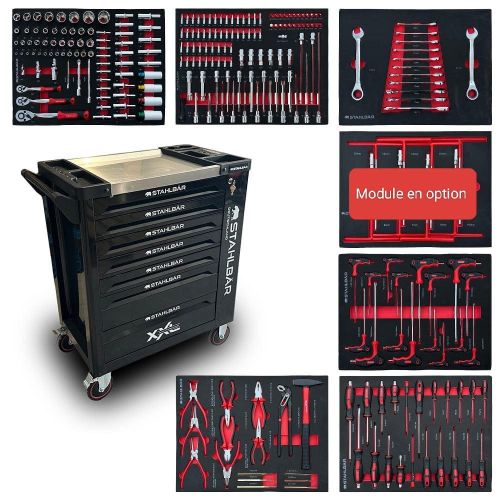 Lot de 7 modules plateaux d’outils Stahlbar CRV pour servante a outils