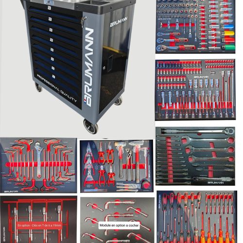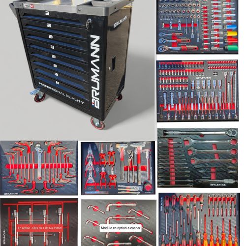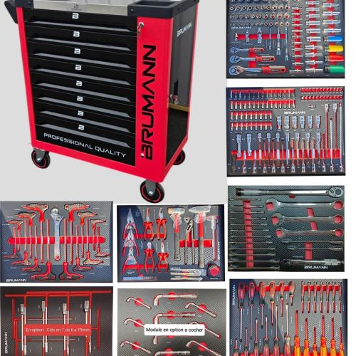 Servante Atelier Pro 310pcs Brumann 8 tiroirs 6 remplis + placard latéral + 2 clés dynamométrique ROUGE