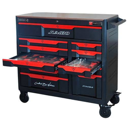 Servante XXL Jumbo Pro Widmann 13 tiroirs 11 remplis d’outils – Rouge