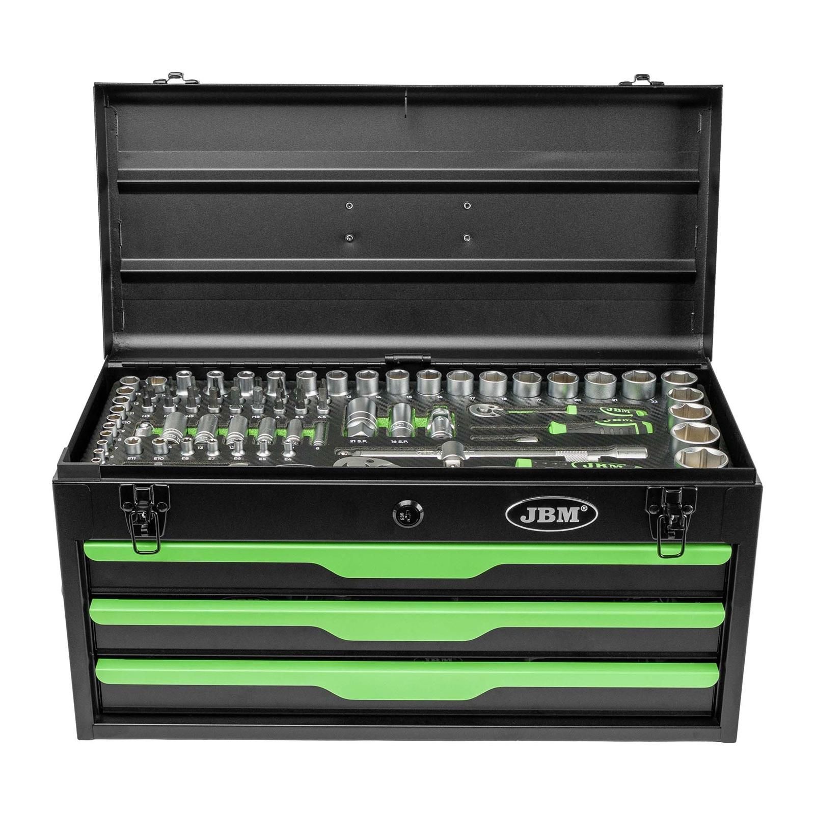 La nouvelle caisse à outils JBM métallique de 143 pièces est l’équipement indispensable pour tout passionné de bricolage, de mecanique et de deux-roues, du jeune pilote de 50cc au motard expérimenté. Conçue pour offrir une solution complète et robuste, cette servante d’atelier portable vous accompagne dans toutes vos opérations de maintenance et de réparation, que ce soit pour votre moto, scooter, mobylette, voiture, karting…