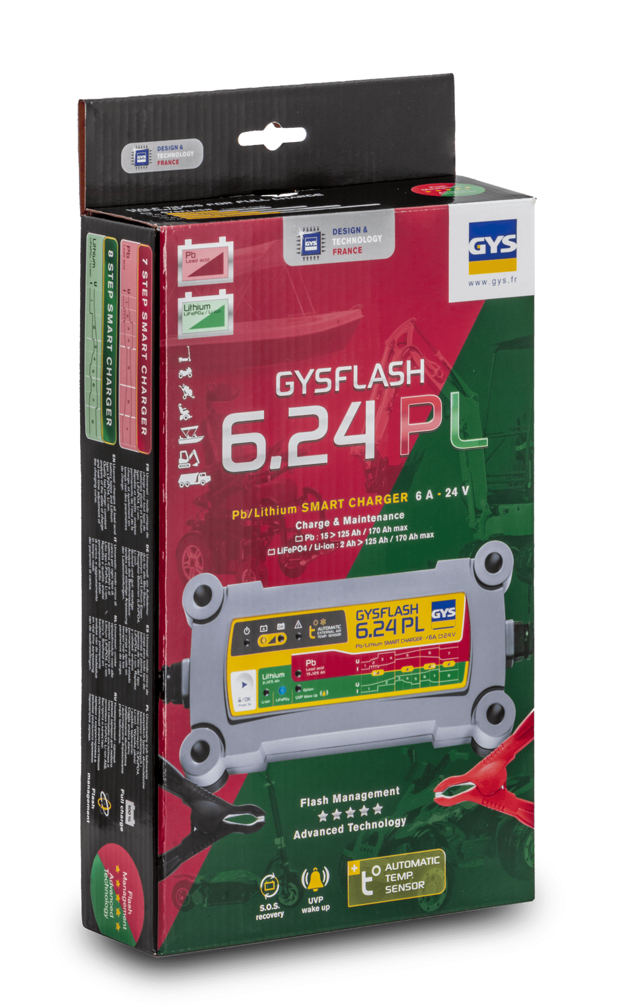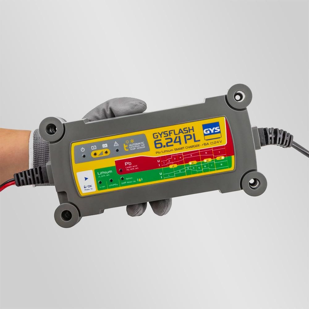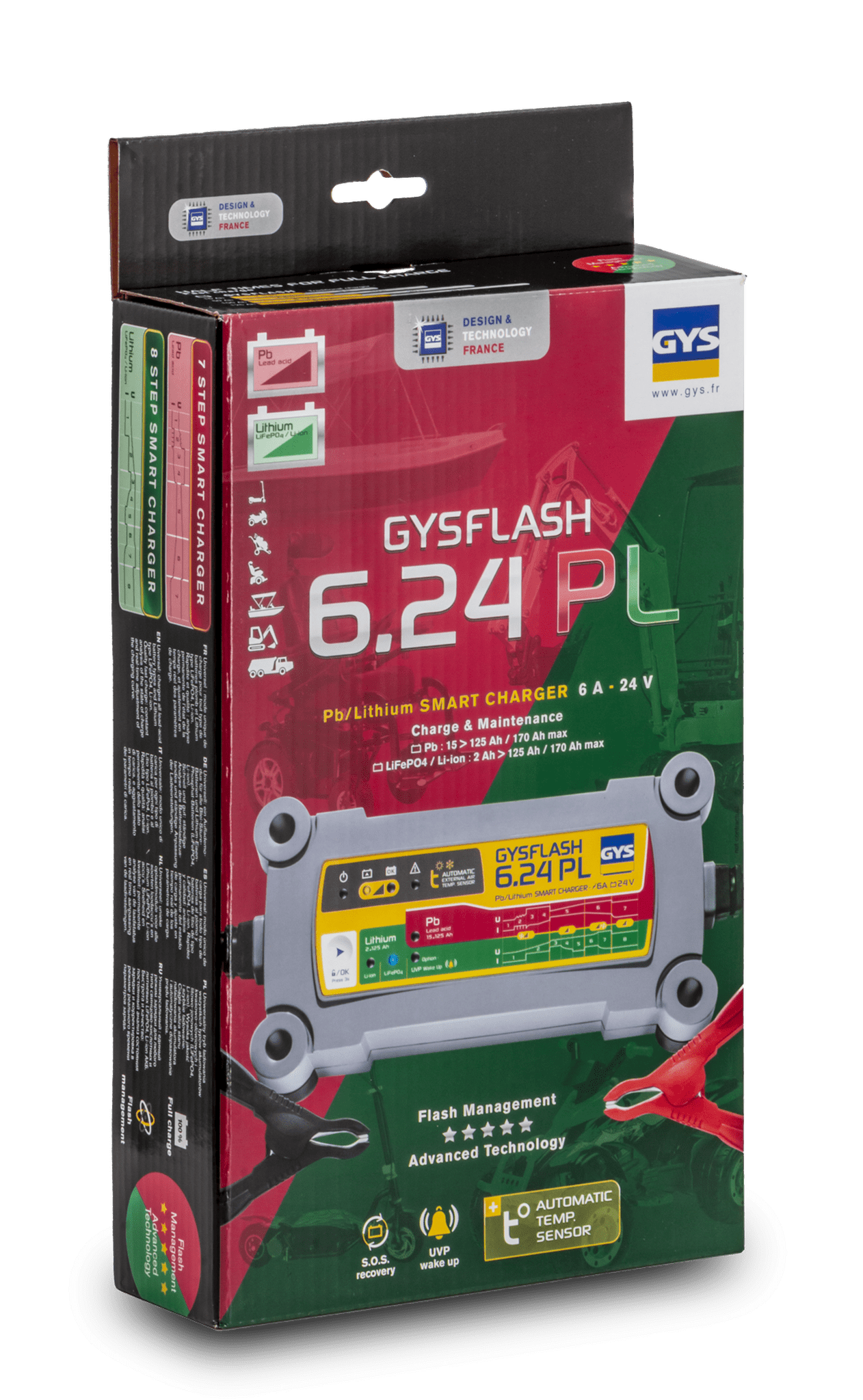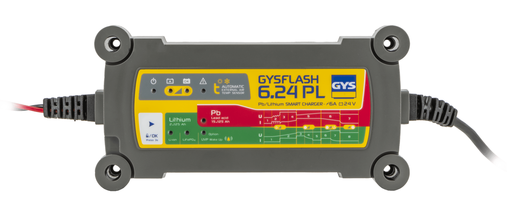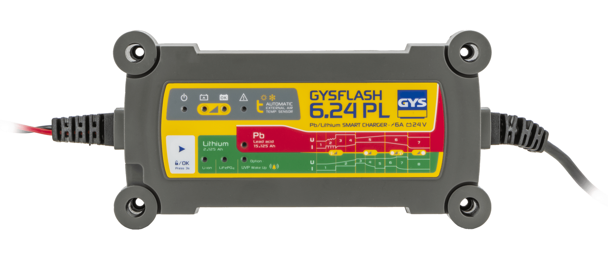 Conçu pour recharger les batteries 24 V Plomb, Lithium-ion «standard» (NMC, NCA, Li-Po, LCO, MCO, etc) et Lithium-Fer Phosphate (LiFePO4).