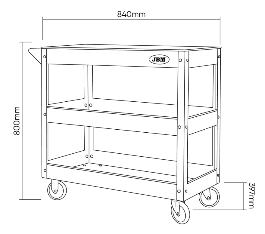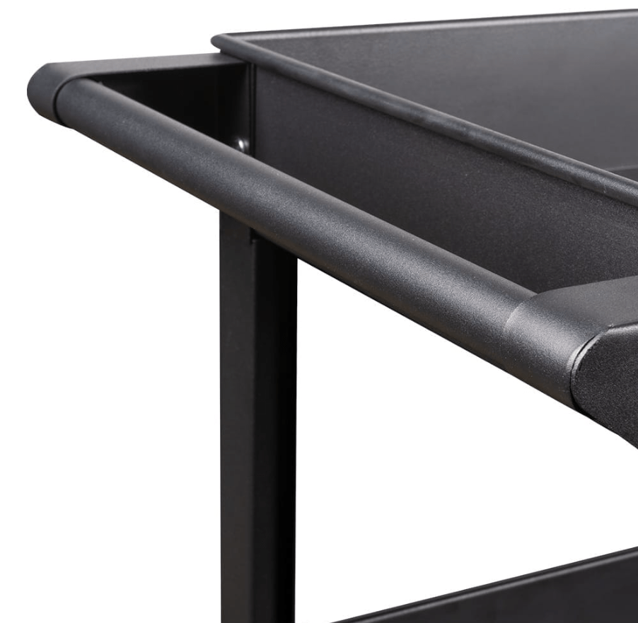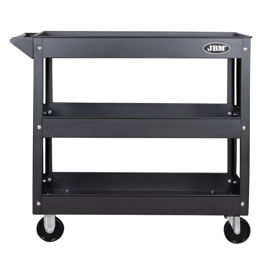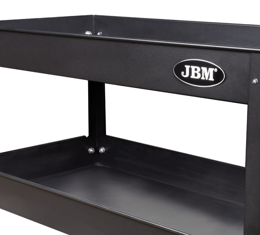• Plateaux / étagères : plusieurs plateaux larges (généralement trois) avec rebords anti‑chute, permettant de poser outils, pièces détachées, ou consommables sans risque de glissade.