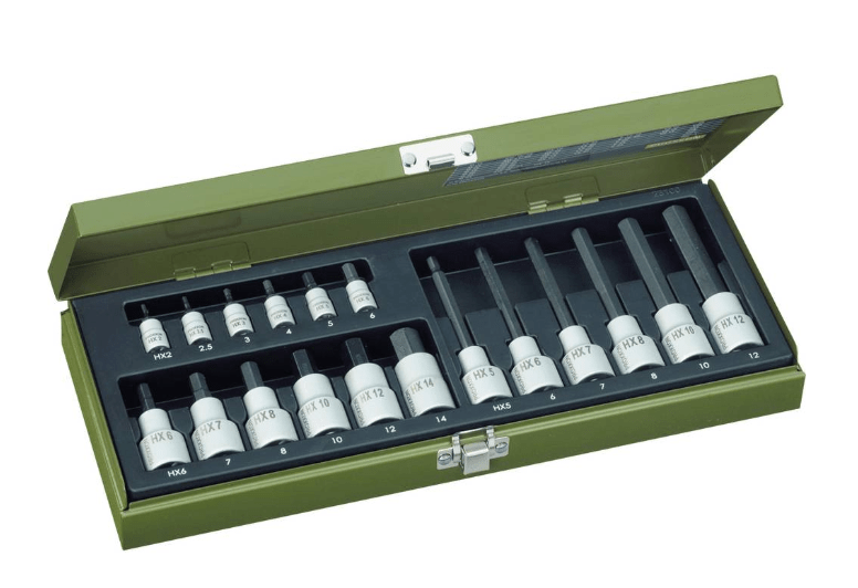 Couverture complète des tailles métriques les plus utilisées pour vis à six pans creux sur entraînements 1/4″ et 1/2″.