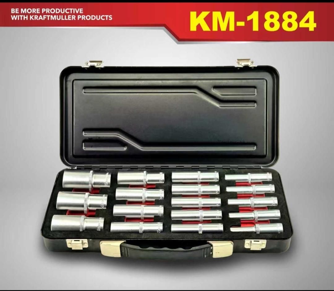 Coffret de 17 douilles longues 1/2 6 pans Chrome vanadium Kraftmuller