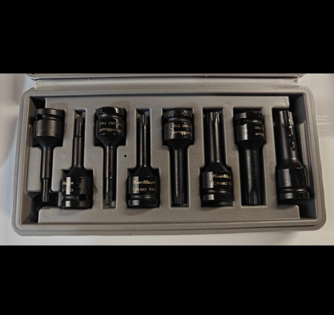 Contenu : 8 douilles à chocs TORX (T27, T30, T40, T45, T50, T55, T60, T70)