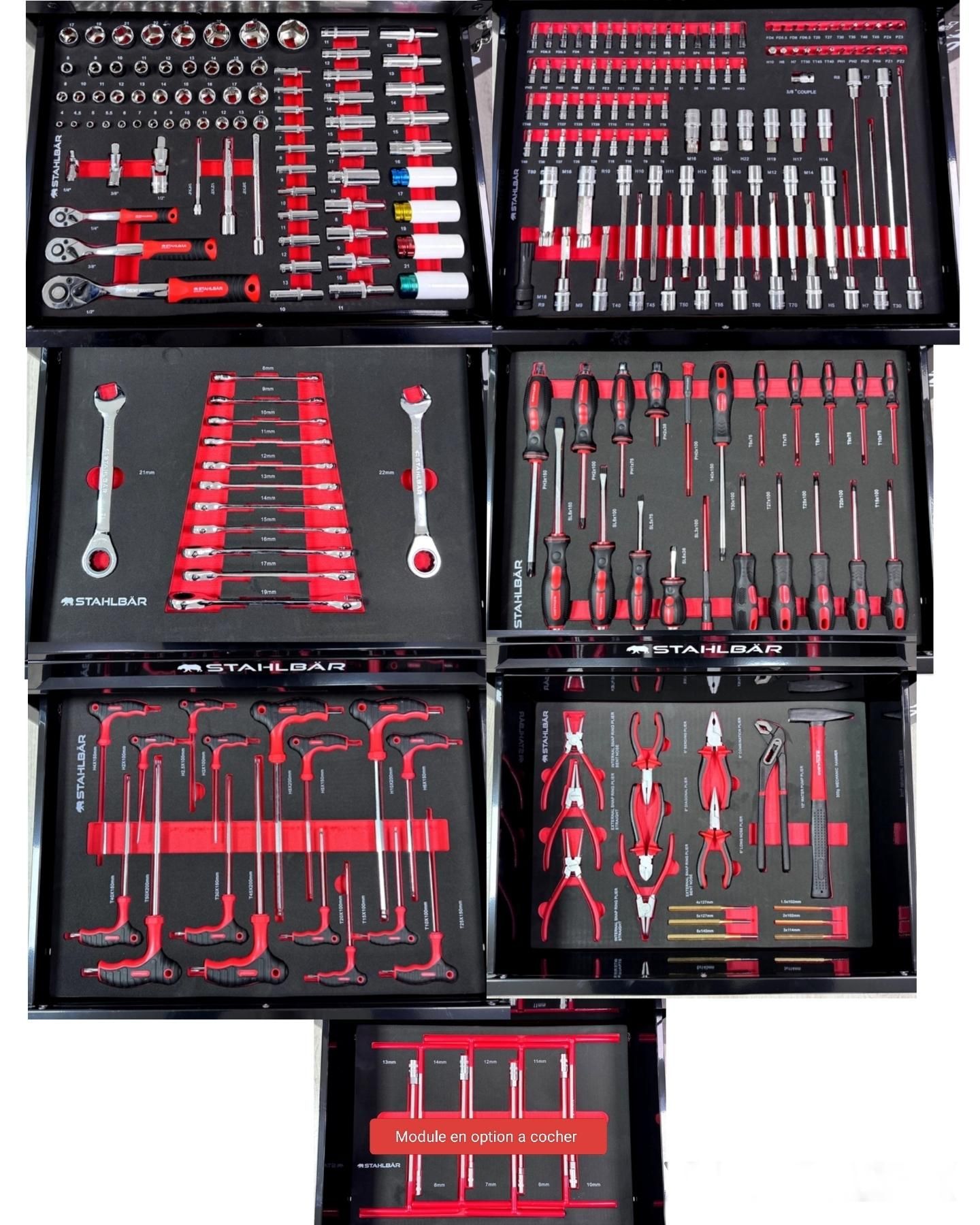 Lot de 7 modules plateaux d’outils Stahlbar CRV pour servante a outils