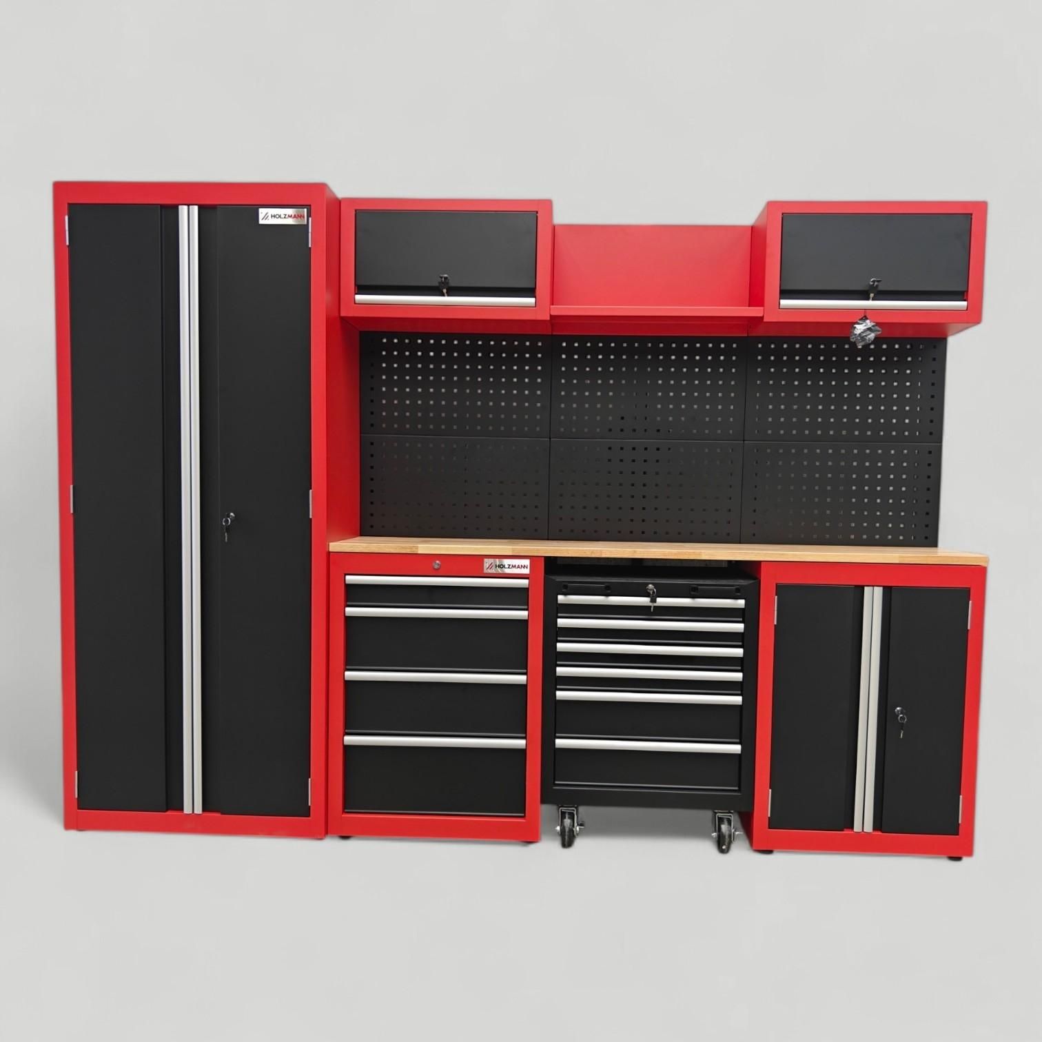 Equipez efficacement votre garage ou atelier avec ce meuble de rangement complet. Conçu pour offrir un espace structuré et fonctionnel, cet ensemble combine rangements bas, hauts, tiroirs et surfaces de travail. Parfait pour garder vos outils et accessoires toujours à portée de main et bien ordonnés.