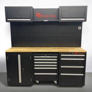 Equipez efficacement votre garage ou atelier avec ce meuble de rangement complet. Conçu pour offrir un espace structuré et fonctionnel, cet ensemble combine rangements bas, hauts, tiroirs et surfaces de travail. Parfait pour garder vos outils et accessoires toujours à portée de main et bien ordonnés.