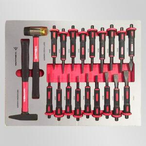 - Module d’outils de servante d’atelier comprenant un assortiment de clés plates à cliquets ainsi que des douilles longues 1/4 avec un assortiment d’embouts btr cruci plat torx 1/4 WIDMANN