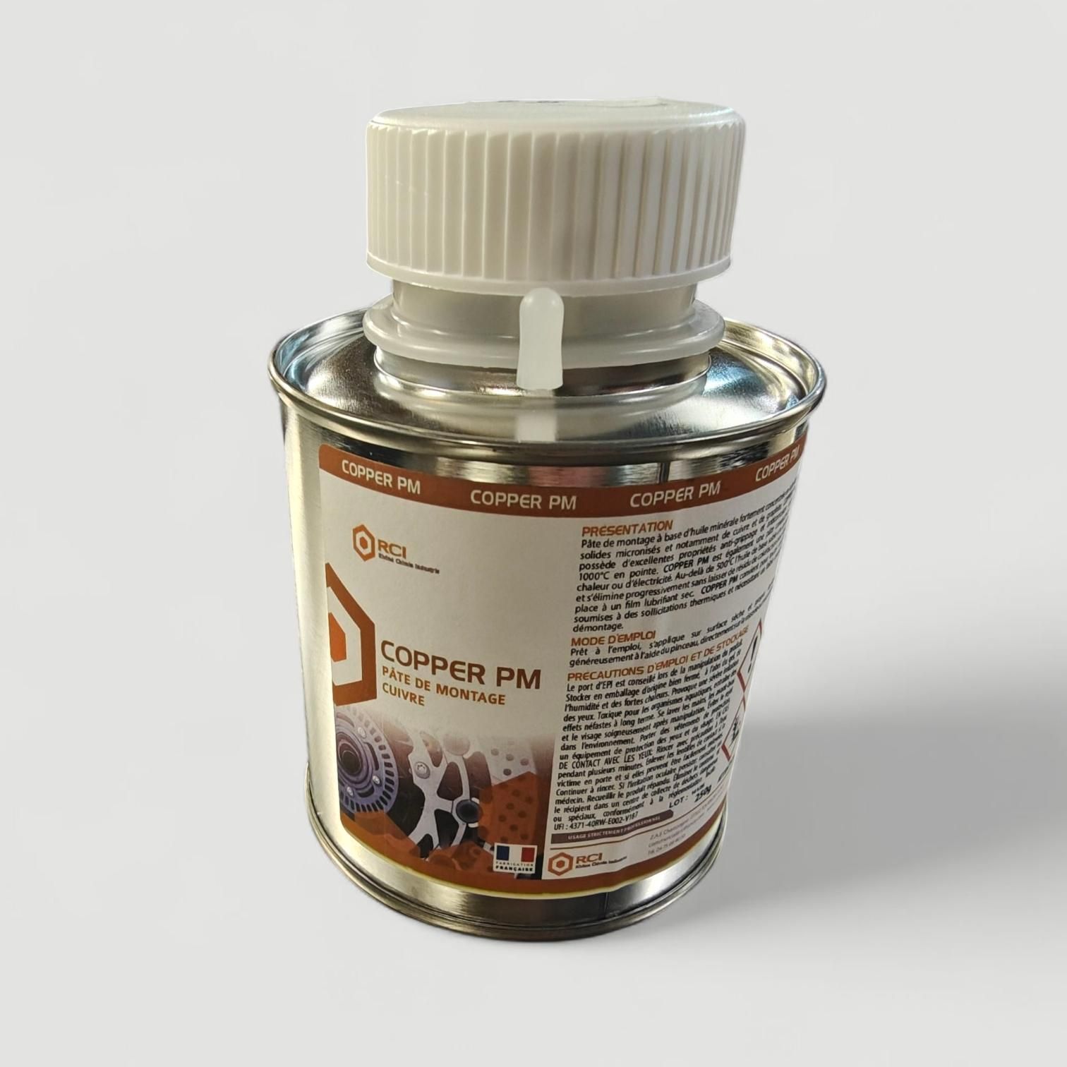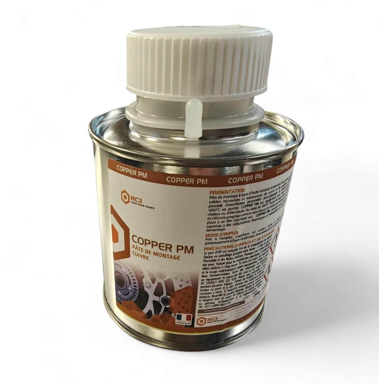 Pâte de montage à base d’huile fortement concentrée en lubrifiants solides micronisés et notamment de cuivre et de graphite. COPPER PM, possède d’excellentes propriétés anti-grippage et anticorrosion jusqu’à 1000°C en point. COPPER PM est également une pâte conductrice de chaleur ou d’électricité. Au-delà de 500°C l’huile de base subie une pyrolyse et s’élimine progressivement sans laisser de résidu. COPPER PM convient pour toutes visseries soumises a des sollicitations thermiques et nécessitant un faible couple de montage.