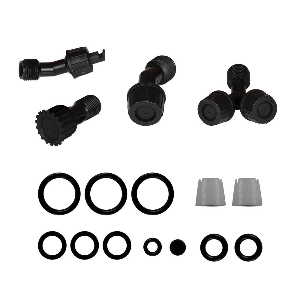 De plus, la livraison comprend 4 buses avec un débit spécifique et des performances en fonction des exigences : 1 buse conique creuse, 1 buse conique creuse double, 1 buse réglable à 4 trous, 1 buse de ventilateur.