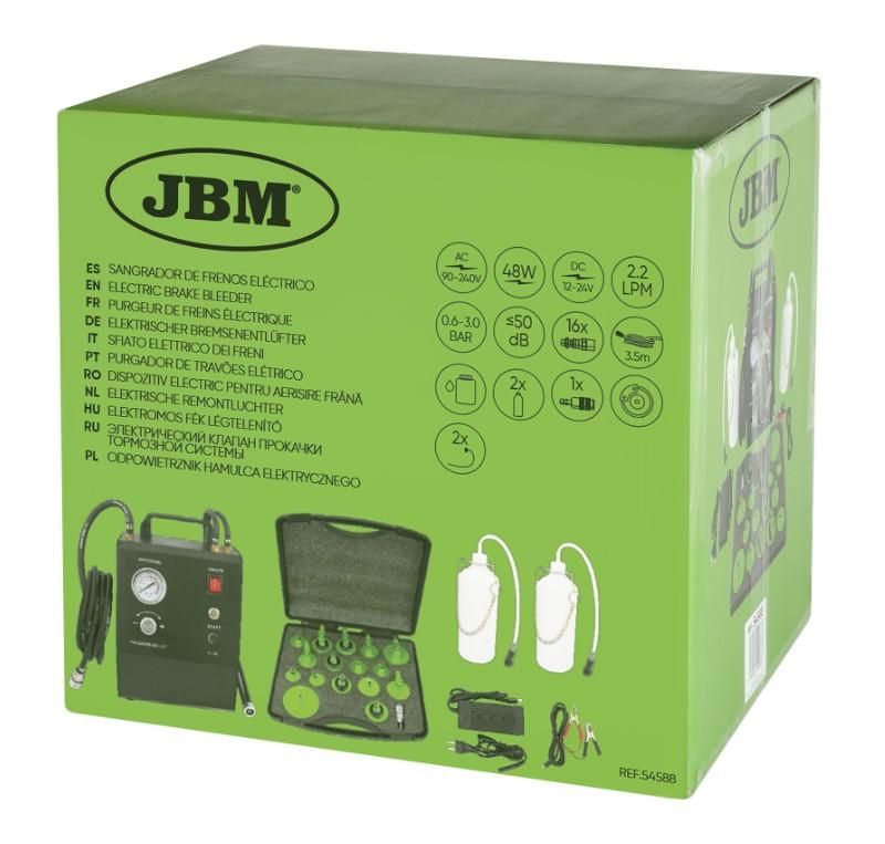 Polyvalent, il fonctionne aussi bien en 12–24 V DC qu’en 110–220 V AC, ce qui le rend idéal aussi bien pour un atelier professionnel que pour une utilisation mobile. Avec sa puissance de 48 W et son débit de 2,2 L/min, il assure une circulation fluide du liquide de frein et réduit considérablement le temps d’intervention.