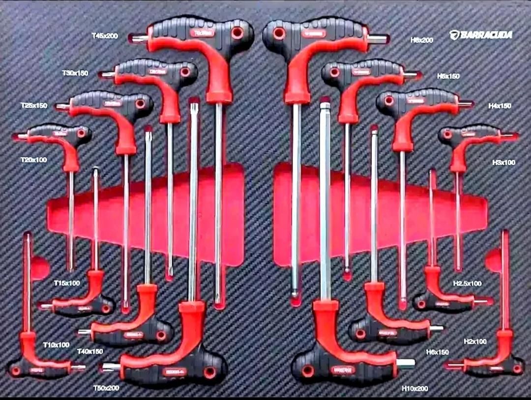 • 5e tiroir : assortiment de clefs en T torx et btr