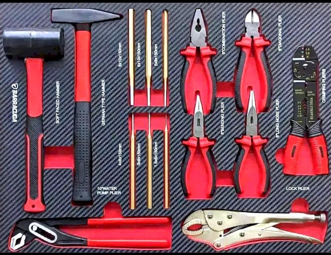 • 6e tiroir : assortiment de pinces, maillet, marteau + chasses goupilles