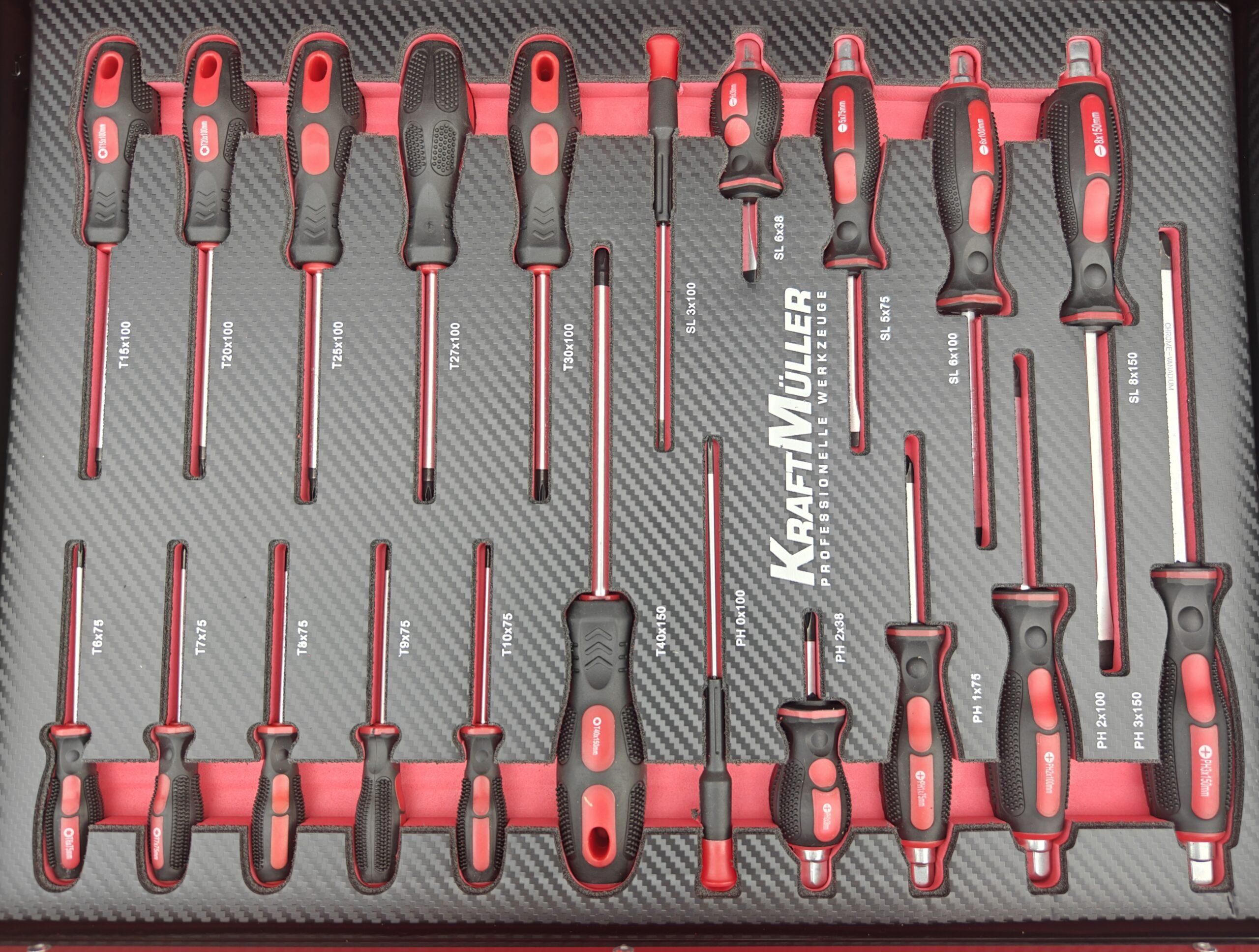 • 4eme tiroir : assortiment de tournevis cruciforme plat + torx