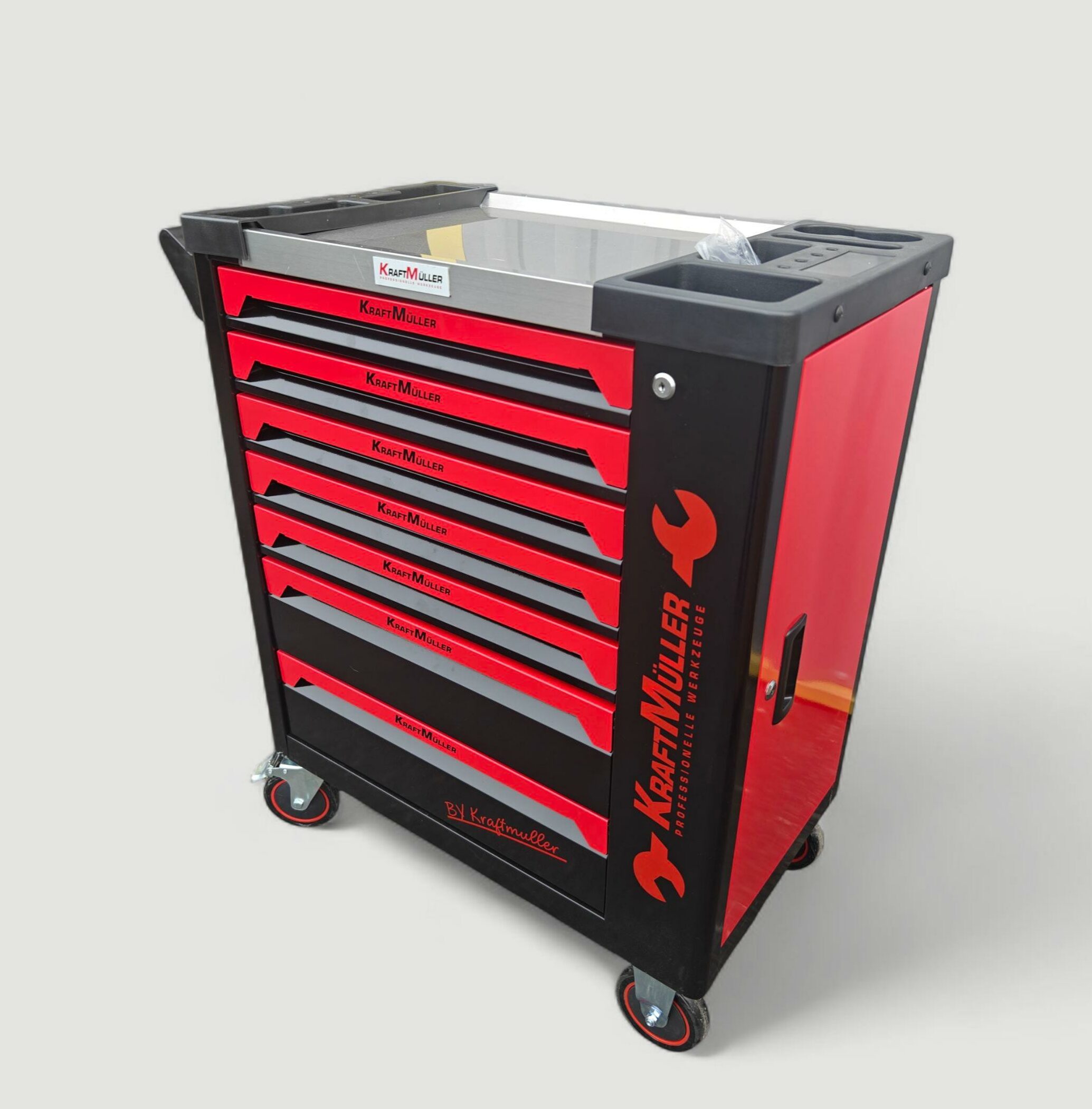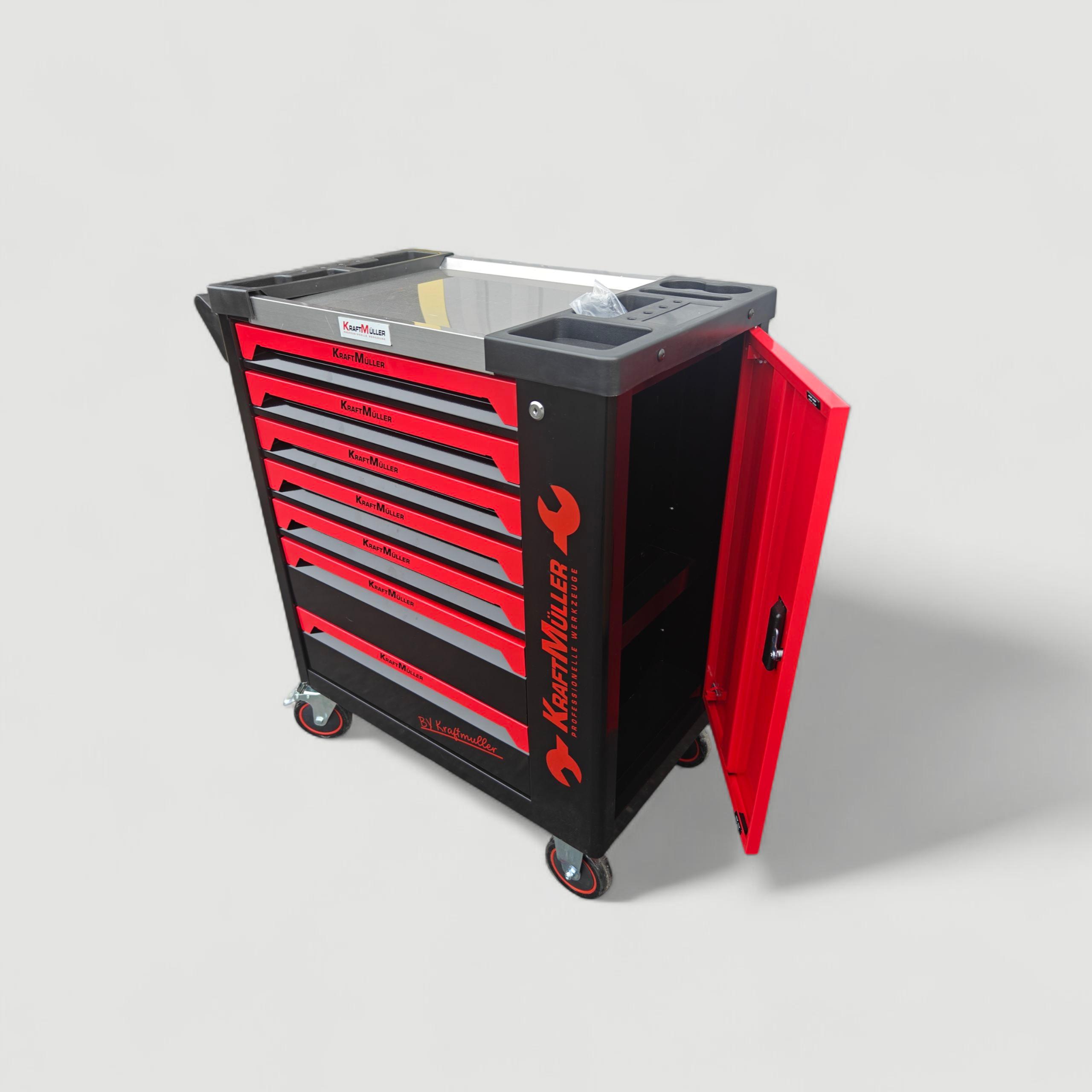 Servante d’atelier Kraftmuller 7 tiroirs dont 6 outillés avec placard lateral de rangement+ clé dynamométrique 1/2 40/210nm.