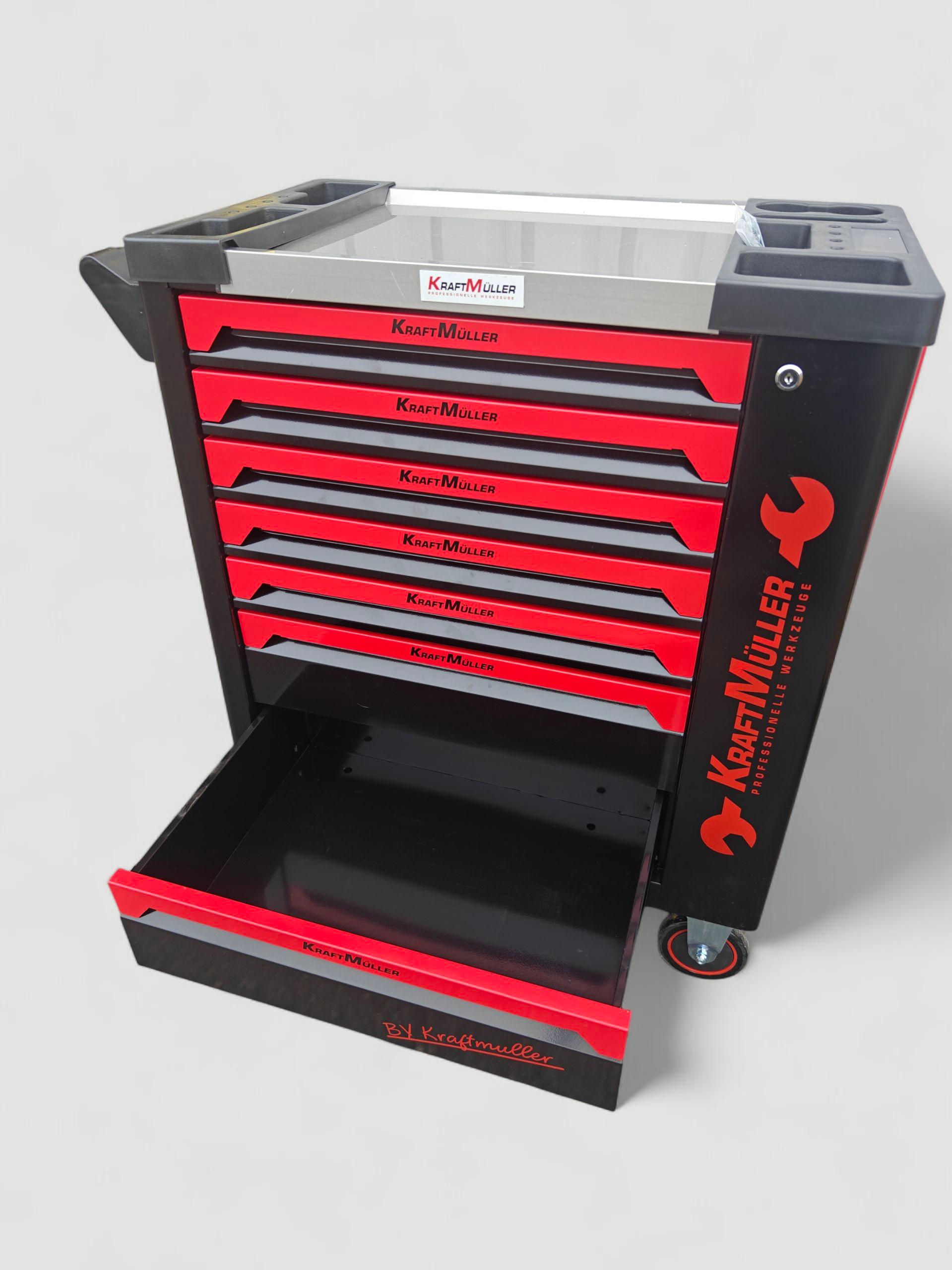 Servante a outils Kraftmuller 7 tiroirs 6 remplis avec clé dynamométrique + placard latéral