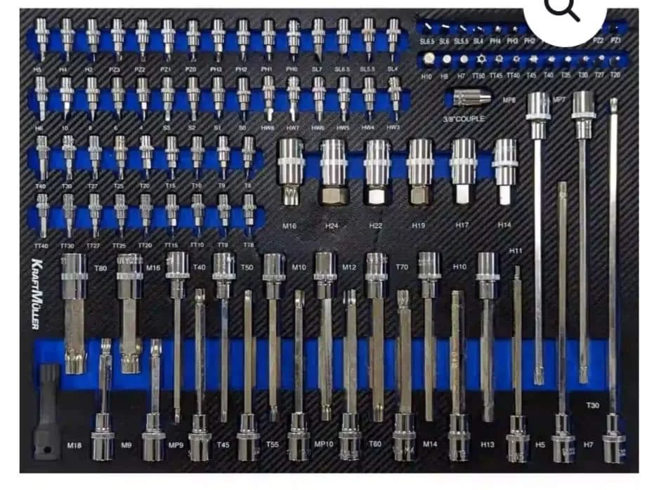 • 2e tiroir : assortiment d’embouts torx btr 6 pans 12 pans pour les 3 tailles de cliquets