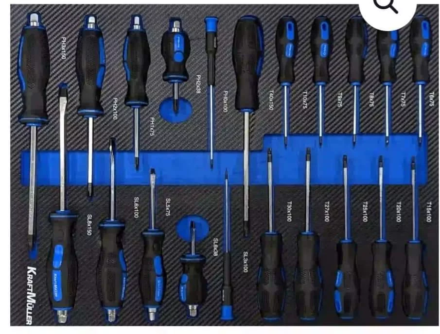 • 4e tiroir : assortiment de tournevis cruciforme plat + isolés