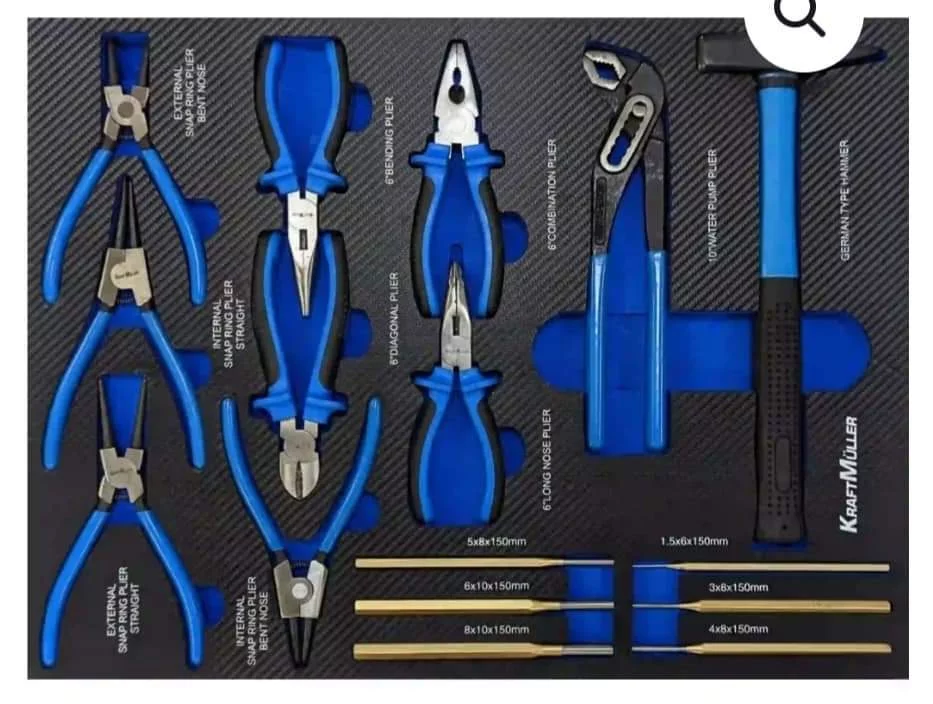 • 6e tiroir : assortiment de pinces, maillet, marteau + chasses goupilles