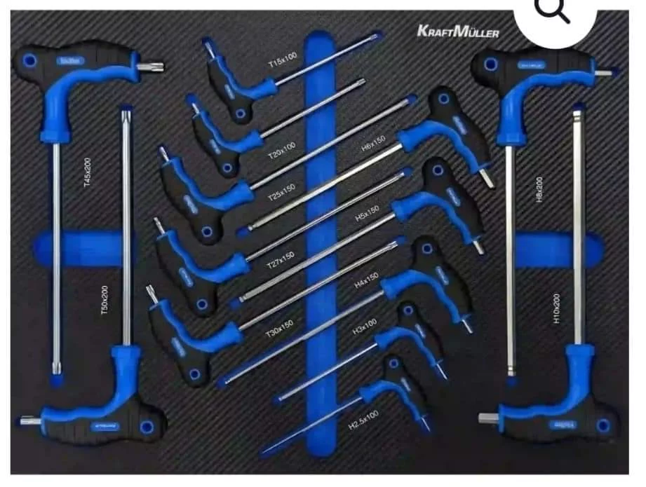 • 5e tiroir : assortiment de clefs en T torx et btr