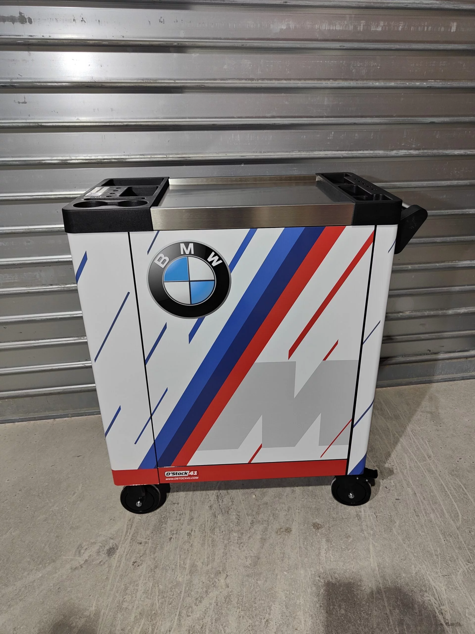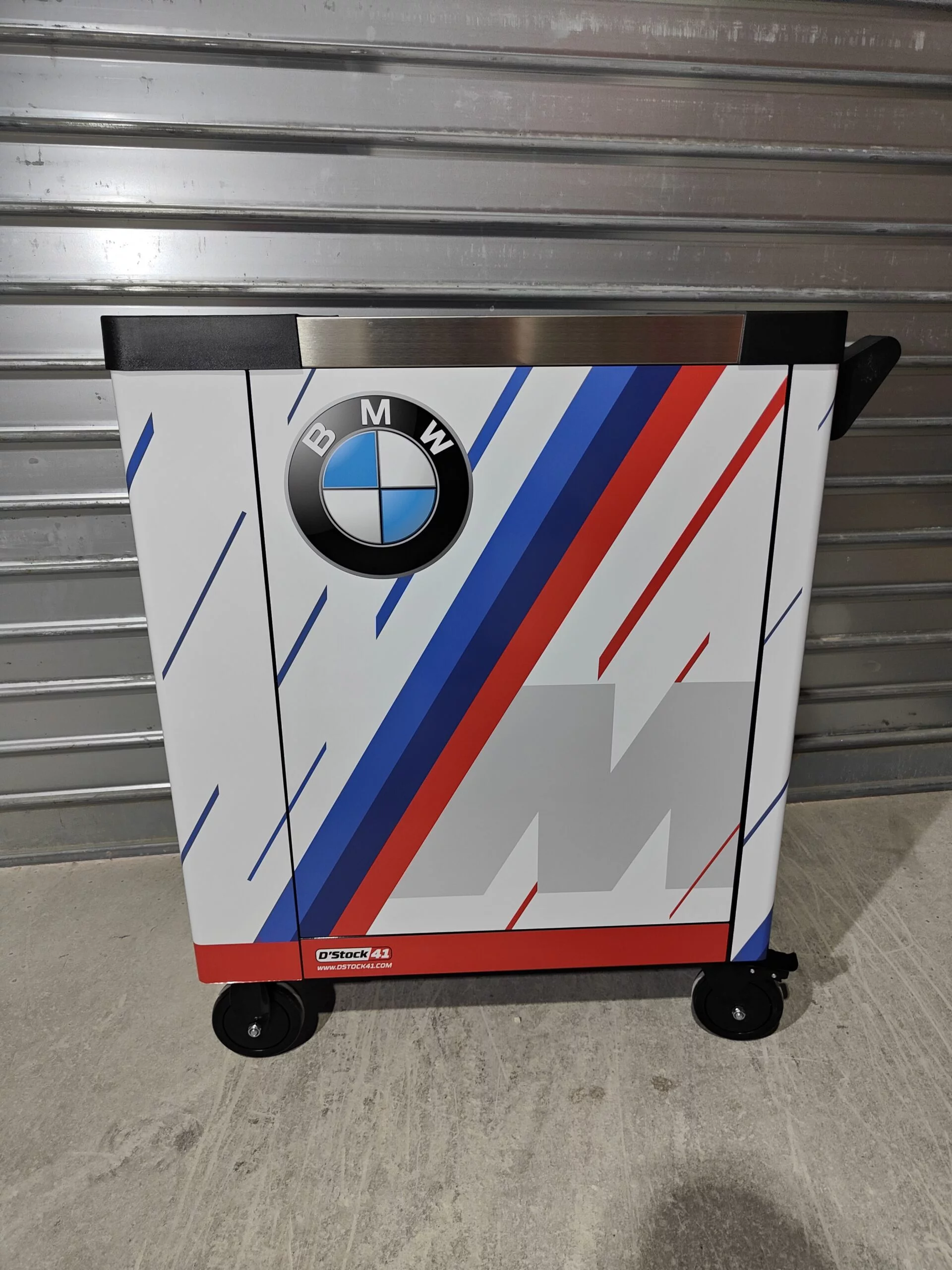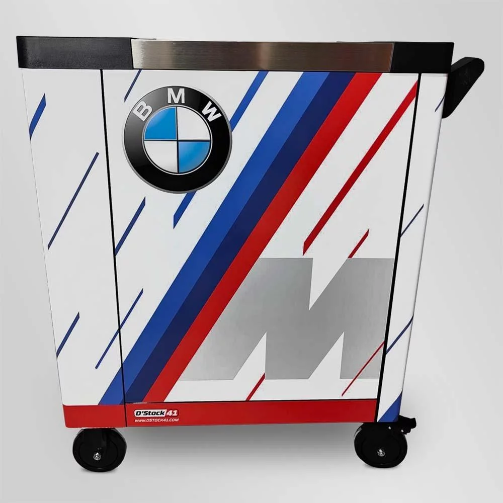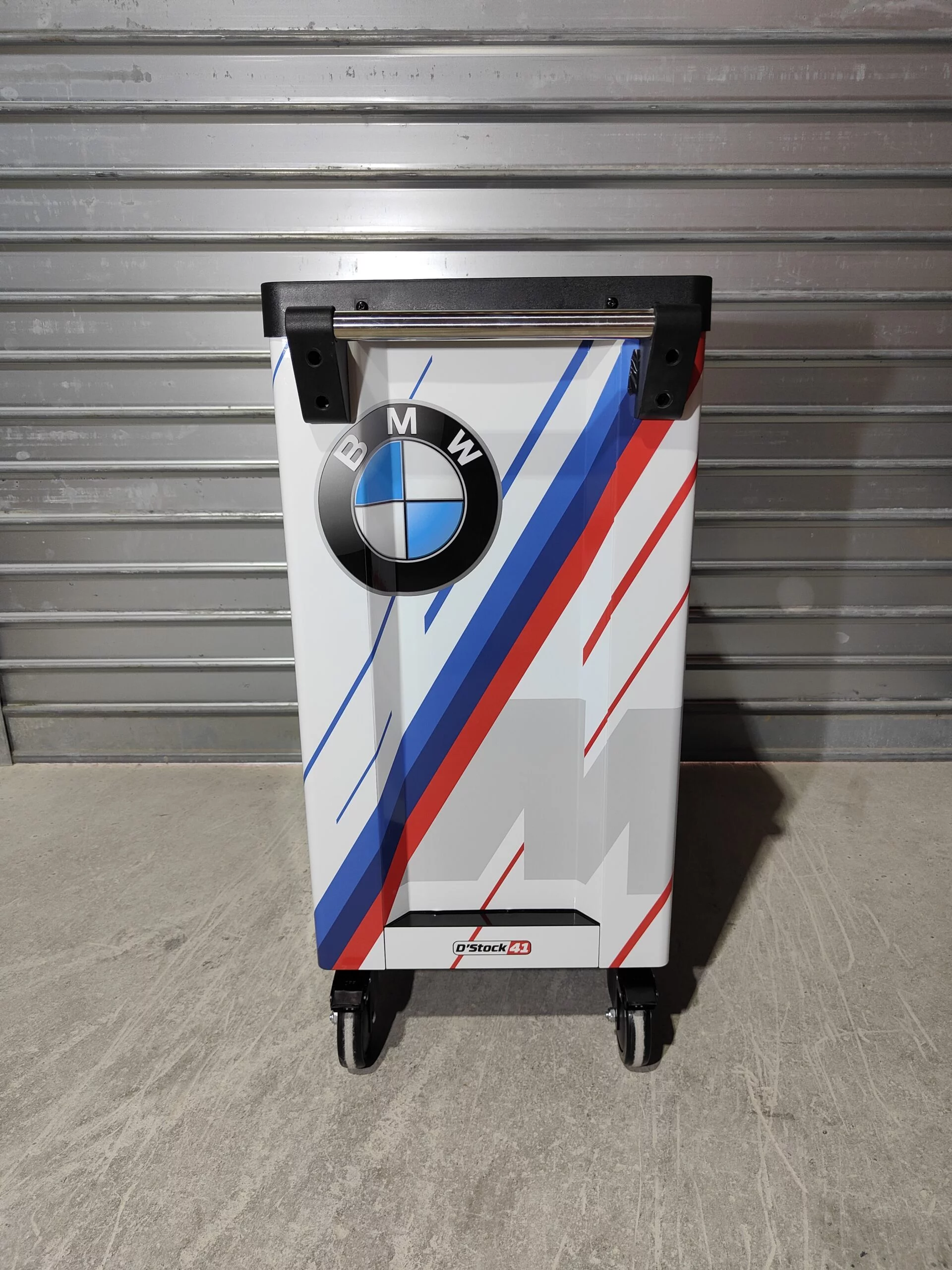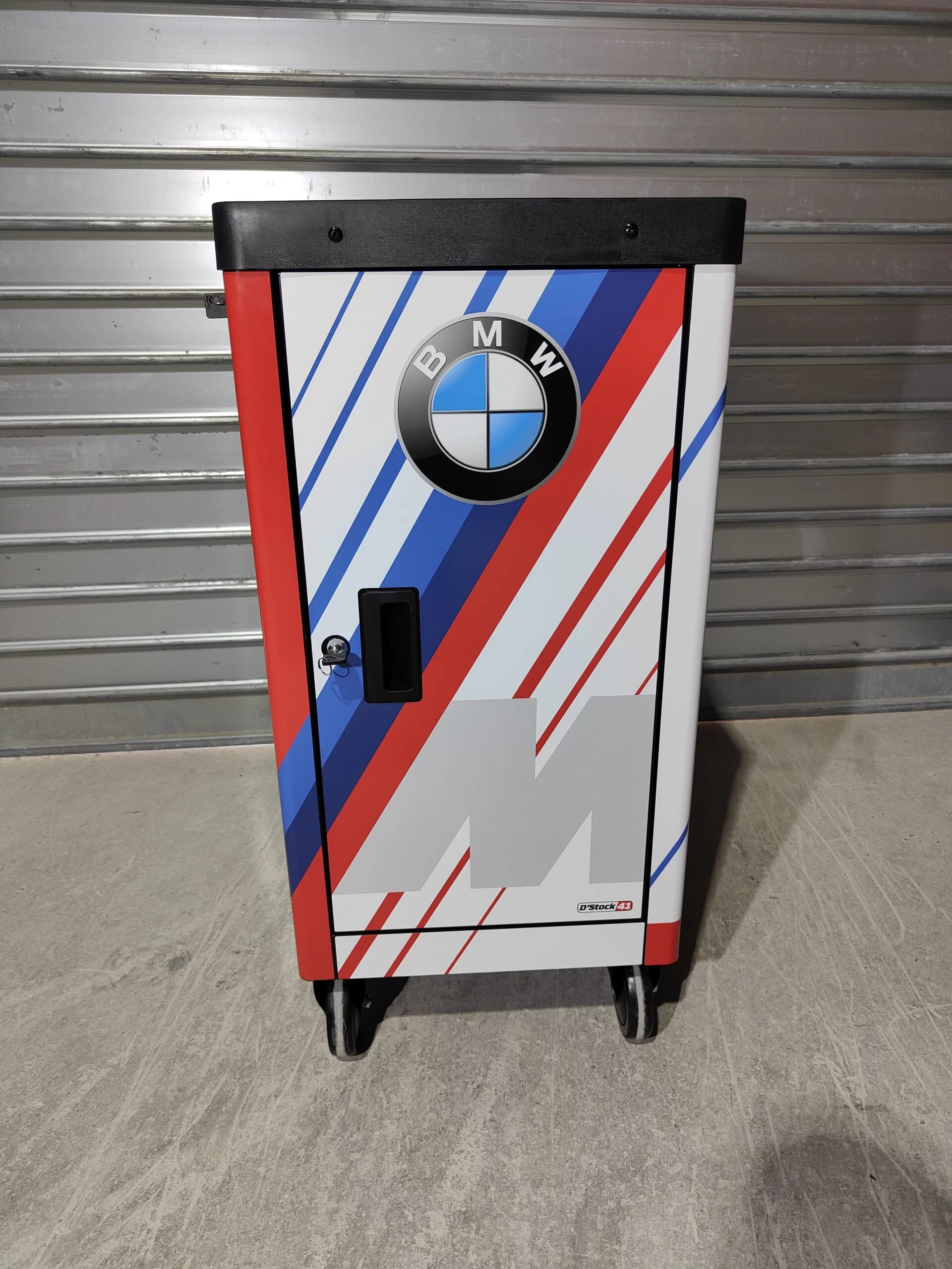 Superbe servante à outils de la marque Barracuda avec 6 tiroirs outillés, déco personalisée BMW M Performance et un placard de rangement latéral + clé dynamométrique.