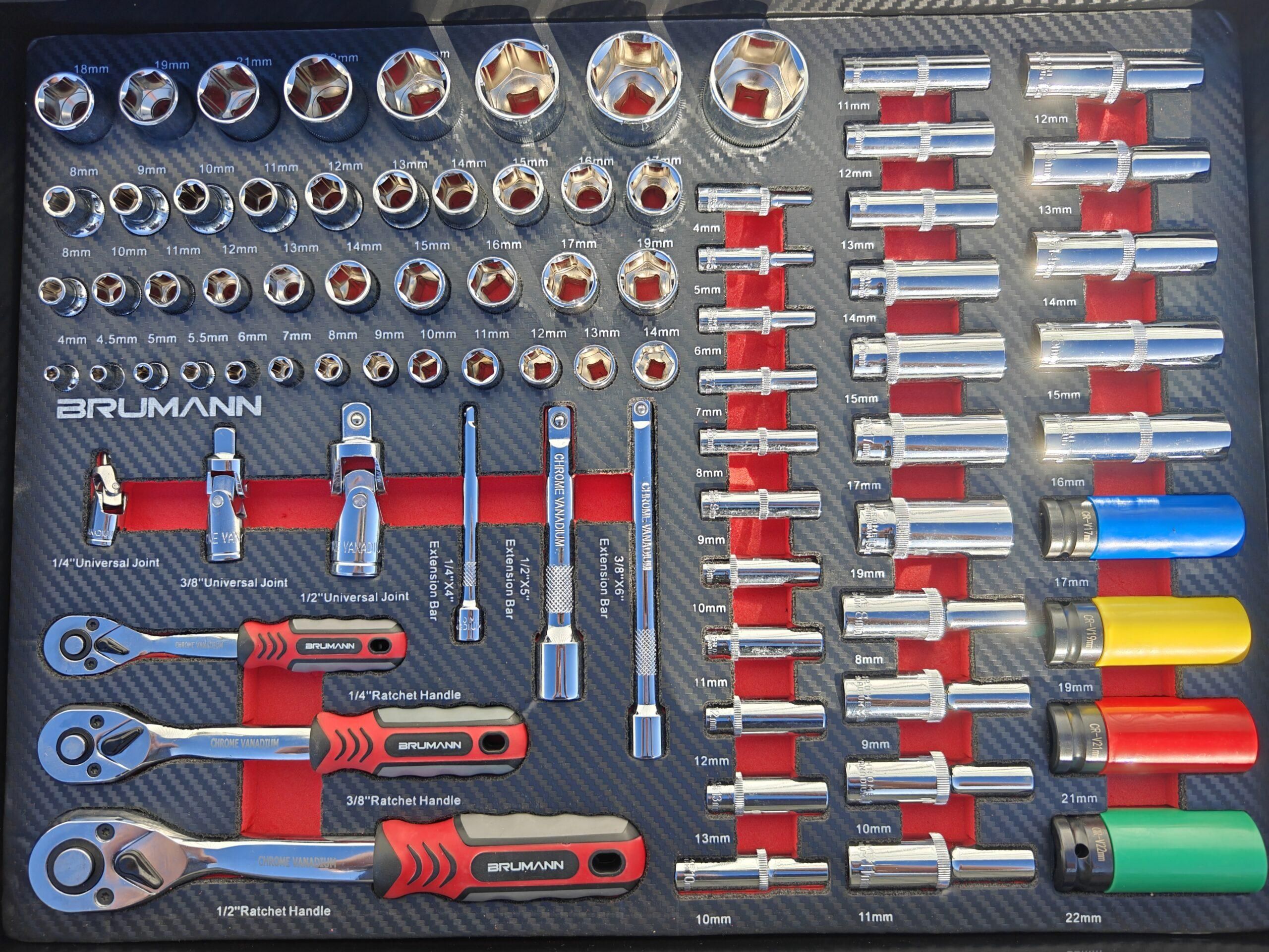 – 3 cliquet 1/4 3/8 1/2 avec douilles courtes et douilles longues rallonges et cardans+ 4 douilles choc bague téflon ( Douille de 16 et 18mm incluse ! )
