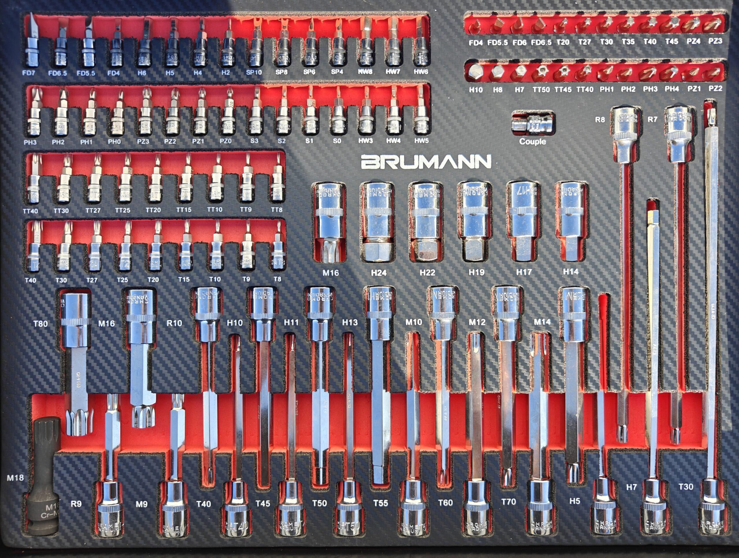 – 2e tiroir : assortiment d’embouts torx btr 6 pans 12 pans pour les 3 tailles de cliquets