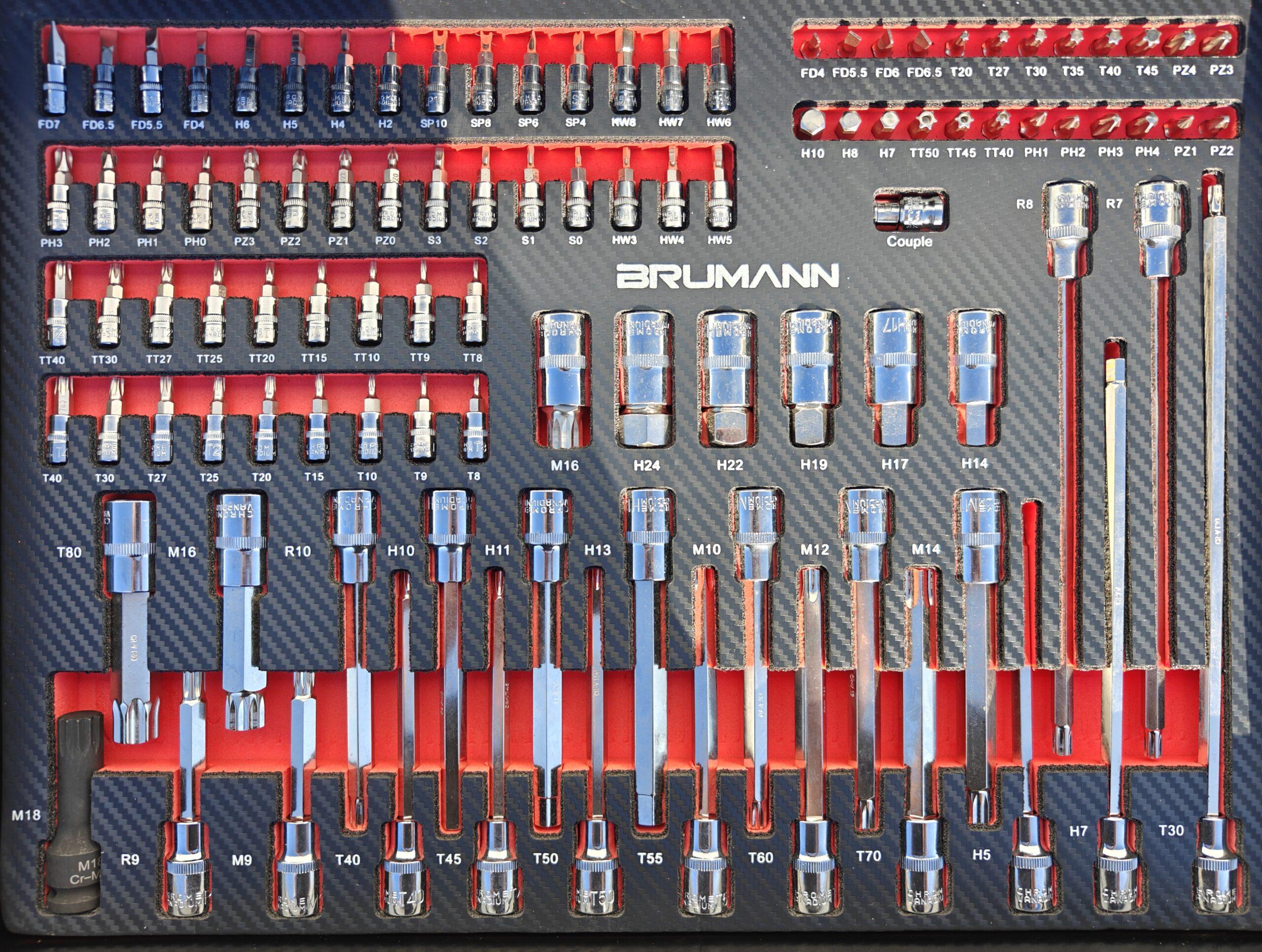 Les modules en mousse moulée et finition carbone sont faits pour un rangement optimal des outils et apportent un look raffiné à cette servante Brumann