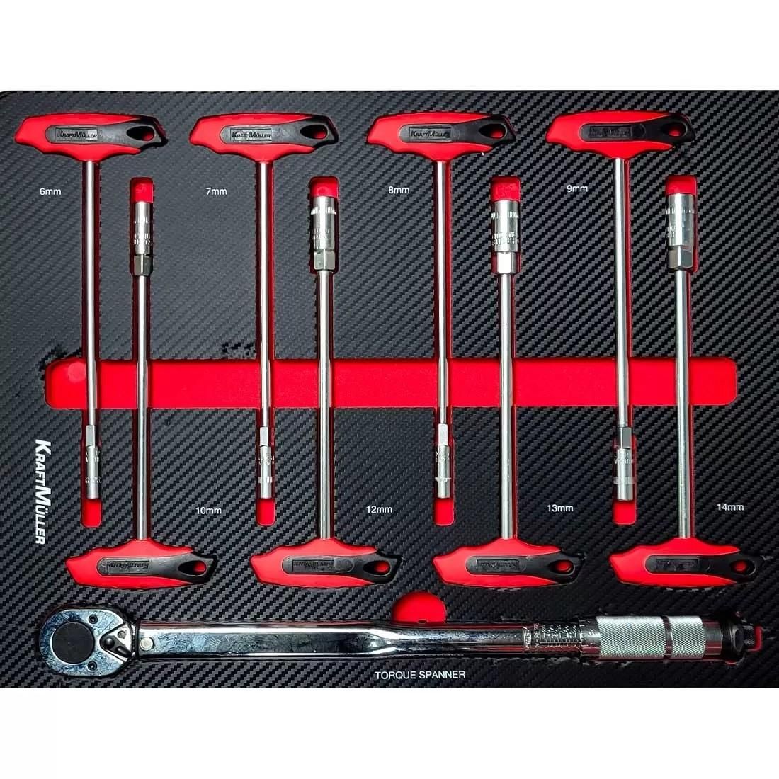 • 6e tiroir : assortiment de clés en T à douilles de 6 à 14mm + clés dynamometrique 1/2 40/210nm