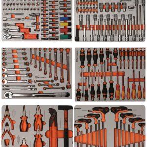 Les modules sont en mousse moulée avec une finition alu brossé pour un rangement optimal des outils et lui donne un look cool.